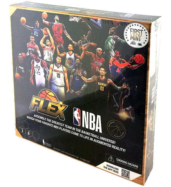 5 Flexagons NBA supplémentaires ajoutés à cette boîte ! L'ensemble contient 10 Player Flexagons, 4 FX Tiles et 1 Full Court Game Board !