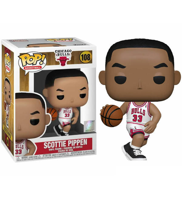 Funko POP! "Basketball 108 NBA - Scottie Pippen / Chicago Bulls". La figurine en vinyle mesure environ 9 cm de haut et est livrée dans une boîte à fenêtre.