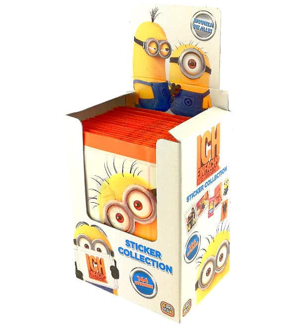 Boîte de 50 pochettes pour la collection de stickers "Ich Einfach unverbesserlich 2". Chaque pochette contient 5 autocollants.