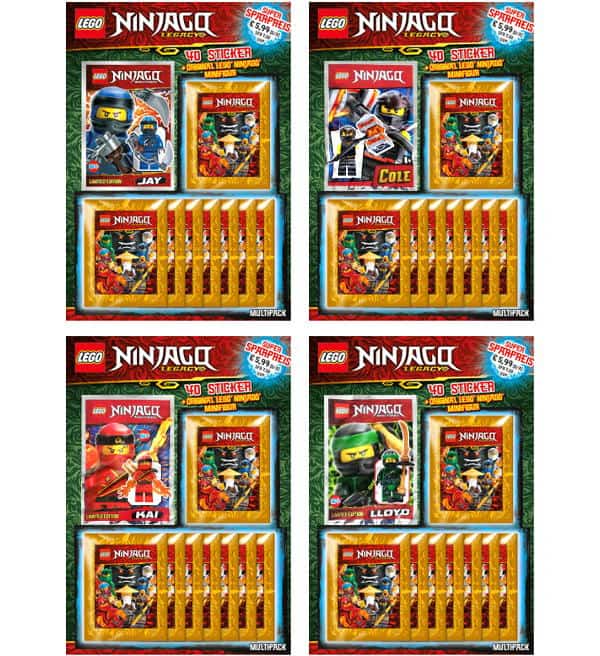 Les 4 multipacks avec les 4 figurines différentes de la collection d'autocollants LEGO Ninjago Legacy de Blue Ocean. Cet ensemble contient les 4 figurines originales LEGO Ninjago suivantes: