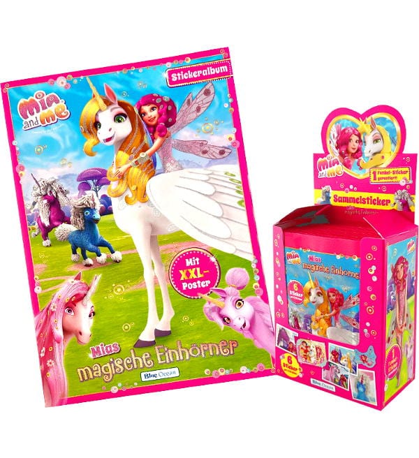 1 album (version allemand) + 1 boîte de 50 pochettes pour la collection de stickers "Mia and me - Mias Magische Einhörner (2023)". Chaque pochette contient 6 images.
