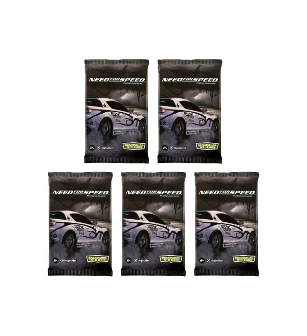 5 pochettes (Allemand) pour la collection "Need for Speed Trading Card Game". Chaque pochette contient 15 cartes.
