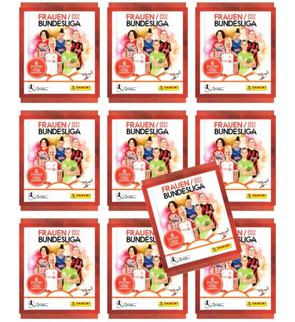 10 pochettes pour la collection de stickers "Panini Bundesliga Féminine 2023-2024". Chaque pochette contient 6 images.