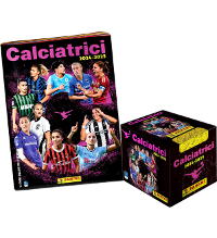 Album + 1 boîte (=36 pochettes) pour la collection de stickers "Panini Calciatrici 2024-2025". Chaque pochette contient 5 images.