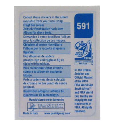 Panini Coupe du Monde 2010 pochette Gold - Sticker avec bleu dos