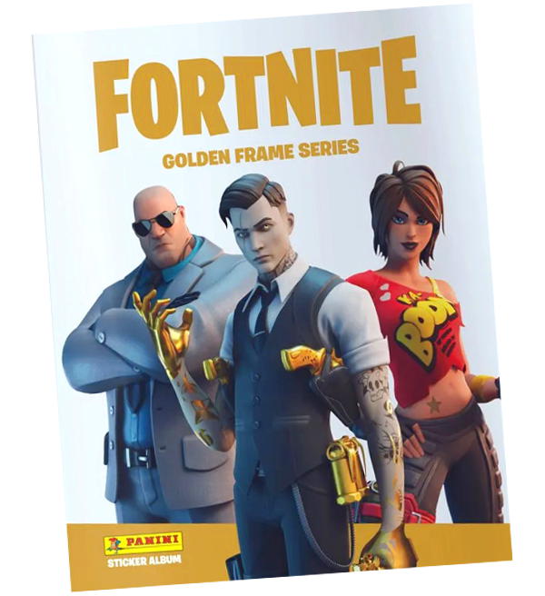 Album vide (version allemand) de la collection de stickers "Panini Fortnite Golden Frame Series" avec 6 autocollants gratuits. L'album comprend 48 pages et la collection se compose de 248 images.