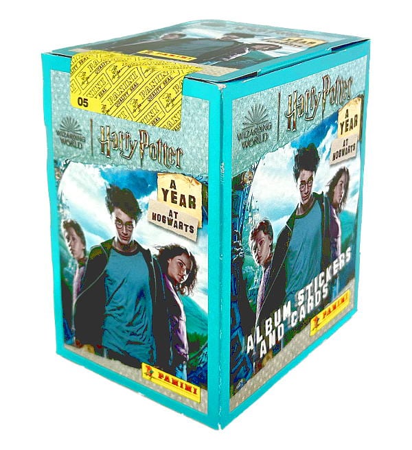 Boîte de 36 pochettes pour la collection de stickers & cards "Panini Harry Potter A Year at Hogwarts". Chaque pochette contient 4 autocollants + 1 Trading Card.