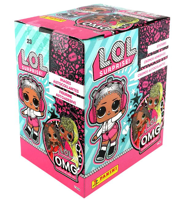 Boîte de 50 pochettes pour la collection de stickers Panini LOL Surprise O.M.G (2021). Chaque pochette contient 5 autocollants.