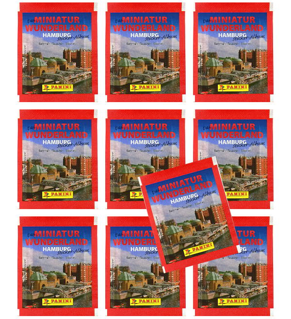 10 pochettes pour la collection de stickers "Panini Miniatur Wunderland Hamburg 1 (2010)". Chaque pochette contient 5 autocollants.