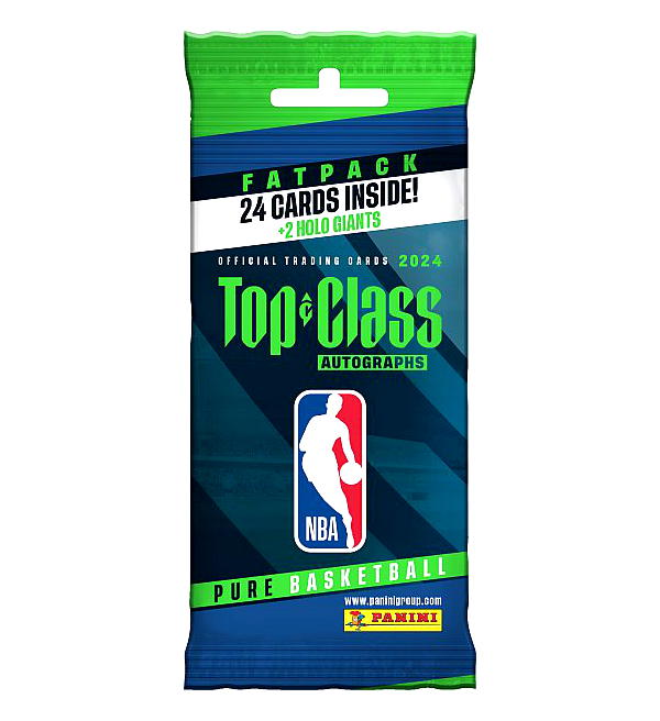 Fatpack de la collection "Panini NBA Top Class 2024" Trading Cards. Chaque Fatpack contient 24 cartes + 2 Holo Giants.