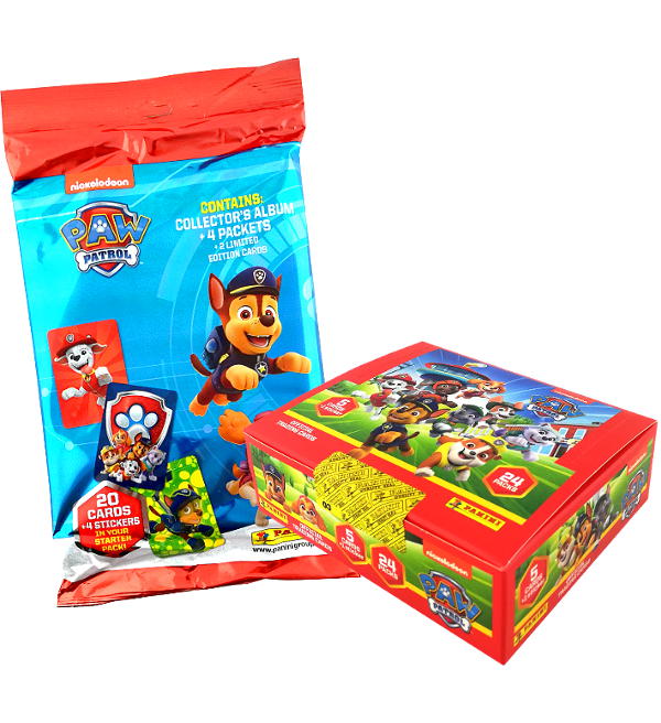 Starter Pack + boîte de 24 pochettes de la collection "Panini Paw Patrol Trading Cards 2022" avec:
