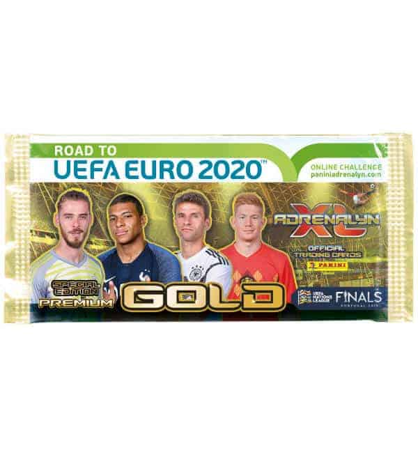 Panini Road to Euro 2020 Adrenalyn XL Premium GOLD Pack dans son emballage d'origine. Un paquet de Panini Road to Euro 2020 Premium GOLD Special Edition contient:
