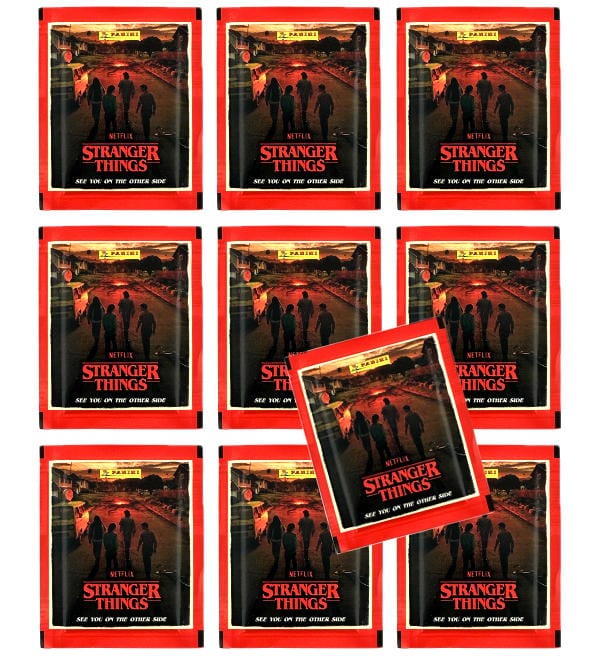 10 pochettes de la collection de stickers "Panini Stranger Things 2 - See you on the other side". Chaque pochette contient 5 images.