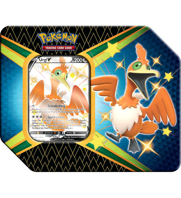 Pokemon Tin Box "Urgl V" (version allemande) de la Pokemon "Glänzendes Schicksal" Trading Card Game.