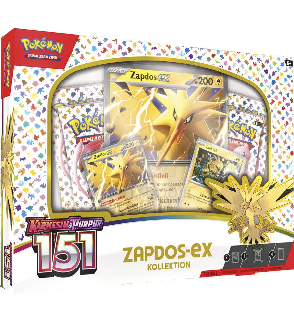 Pokemon "Karmesin & Purpur 151 - Zapdos EX Kollektion" Collection (allemand) du jeu de cartes à collectionner Pokémon.