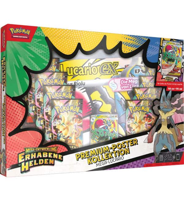 "Pokemon Mega Entwicklung Erhabene Helden Premium-Poster-Kollektion Mega-Lucario" (allemand) du jeu de cartes à collectionner Pokémon.