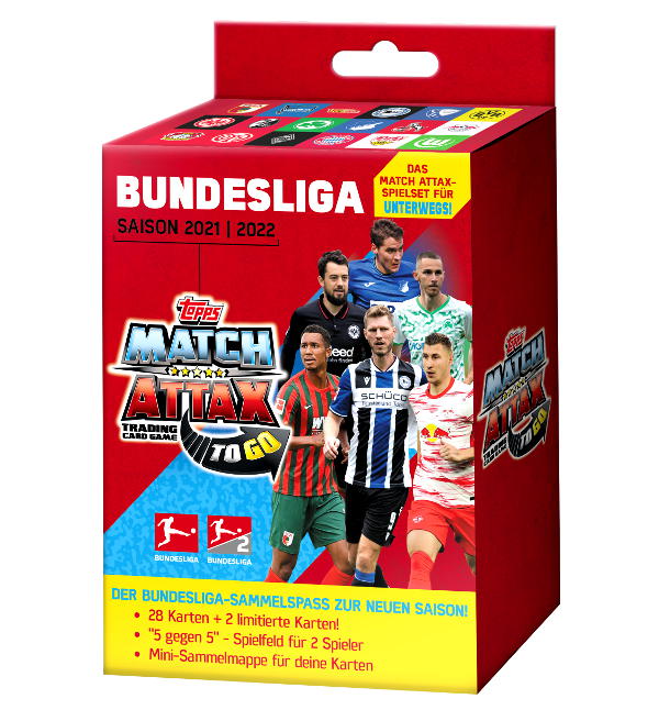 ToGo-Box de la collection Topps Bundesliga Match Attax 2021/22 avec 28 cartes + 2 Limited Edition Cards.