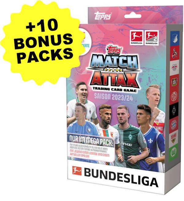 Megapack + 10 Bonus Packs de la collection Topps Bundesliga Match Attax 2023/24 avec le contenu suivant: