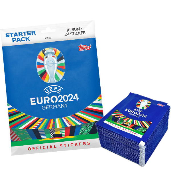 Starter Pack + 50 pochettes de la collection de stickers "Topps EURO 2024" avec: