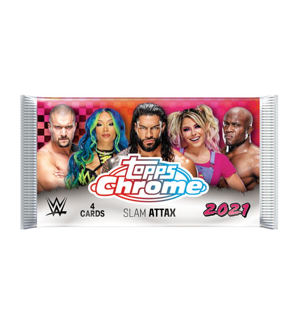 Boîte de 18 pochettes de la collection Topps Slam Attax CHROME 2021. Chaque pochette contient 4 cartes.