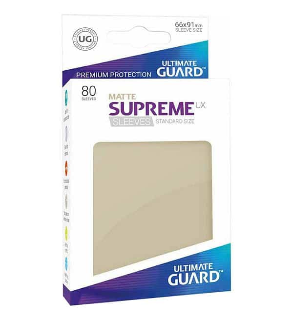 80 "UG Supreme UX Sleeves - Standard mates sable" pour protéger vos cartes.