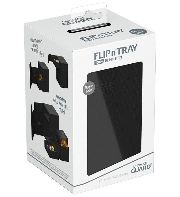 Boîte haute qualité avec texture XenoSkin, fermeture magnétique et tiroirs pour cartes et dés, pour protéger et stocker en qualité archivage des cartes de jeu taille standard. Peut contenir plus de 80 cartes en double-sleeve (Cartes et dés non inclus).