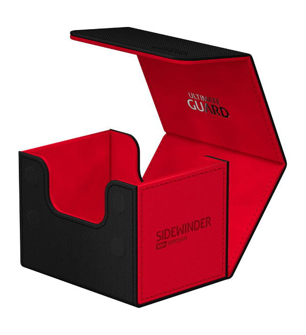 La boîte pratique Sidewinder 100+ permet d'accéder facilement à votre deck des deux côtés. Elle est optimisée pour contenir 100 cartes en double-sleeve ou 120 cartes en simple-sleeve de taille standard dans des pochettes Ultimate Guard.