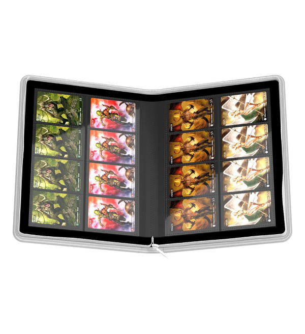 Portfolio de haute qualité avec une texture innovante XenoSkin et couverture résistante offrant 20 pages à 16 poches reliées pour toutes les cartes de jeu de taille standard et japonaise.