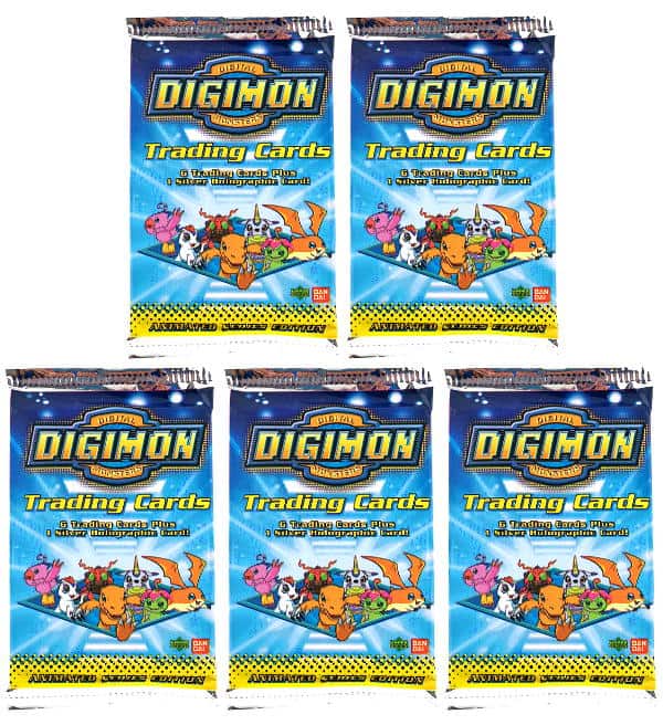 5 Pochettes (=35 cartes) de la collection "Upper Deck Digimon Trading Cards Series 1" Trading Cards (1999). Contenu par booster :