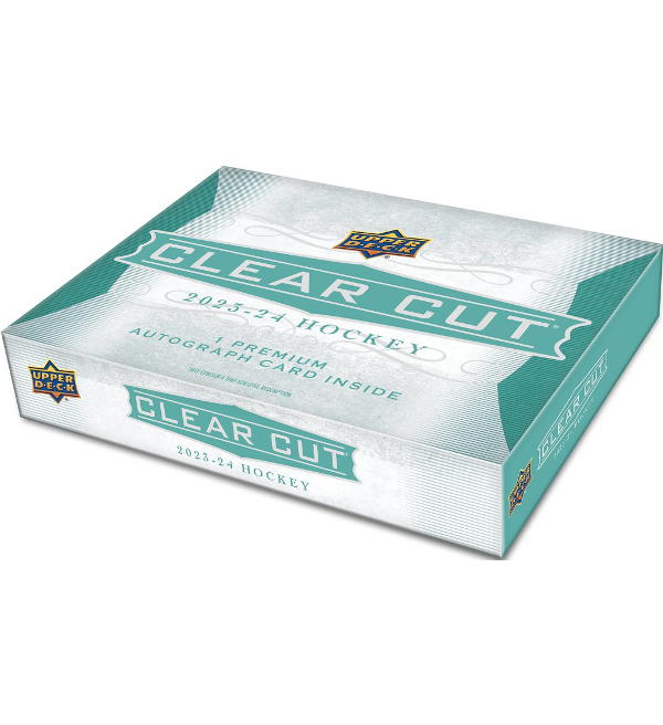 Hobby Box avec 1 PREMIUM AUTOGRAPH CARD de la collection "Upper Deck NHL 2023-24 Hockey - CLEAR CUT" Trading Cards.